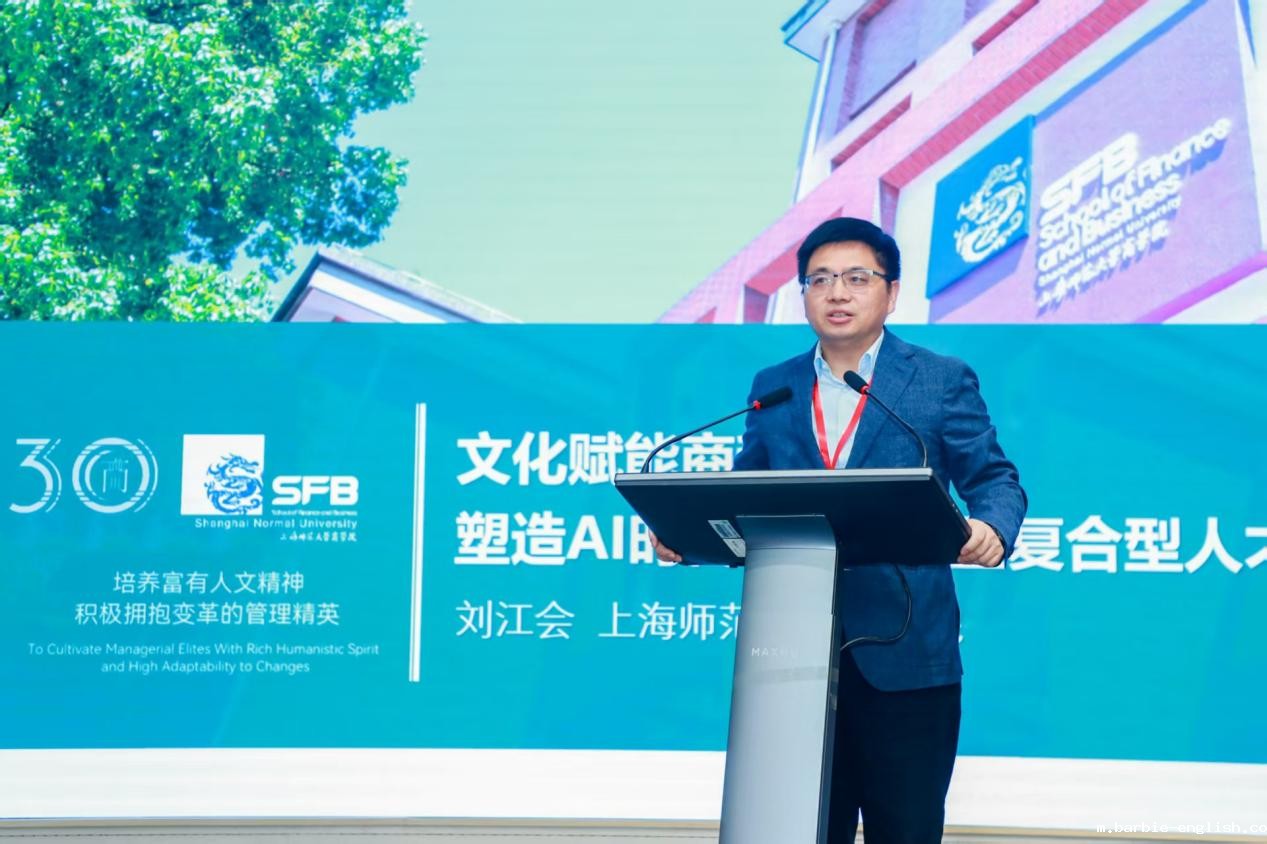 韦德官方下载网址商学院院长刘江会以《文化赋能商科教育、塑造AI时代ELITE五星复合型商科人才》为题,阐述韦德官方下载网址MBA文化产业创新管理方向设立初衷。他提出,面对地缘政治、人工智能、人口结构变化等挑战,传统商科“重技术、轻人文”的模式亟待革新。为此,学院构建“ELITE五星能力培养体系”,通过商道人文、领导力、国际视野、数字素养、创新精神五大模块,培养兼具文化洞察力与商业创新力的复合型人才。他以“霸王茶姬”为例,强调文化是商业的“锚点”——其“无声门店”助力听障人士就业、以东方美学打造品牌的实践,正是“文化铸魂商业”的典范。